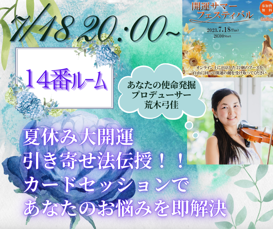 本日【開運サマーフェスティバル】&明日【カードマジック祭り】20時~無料カードセッション開催!!